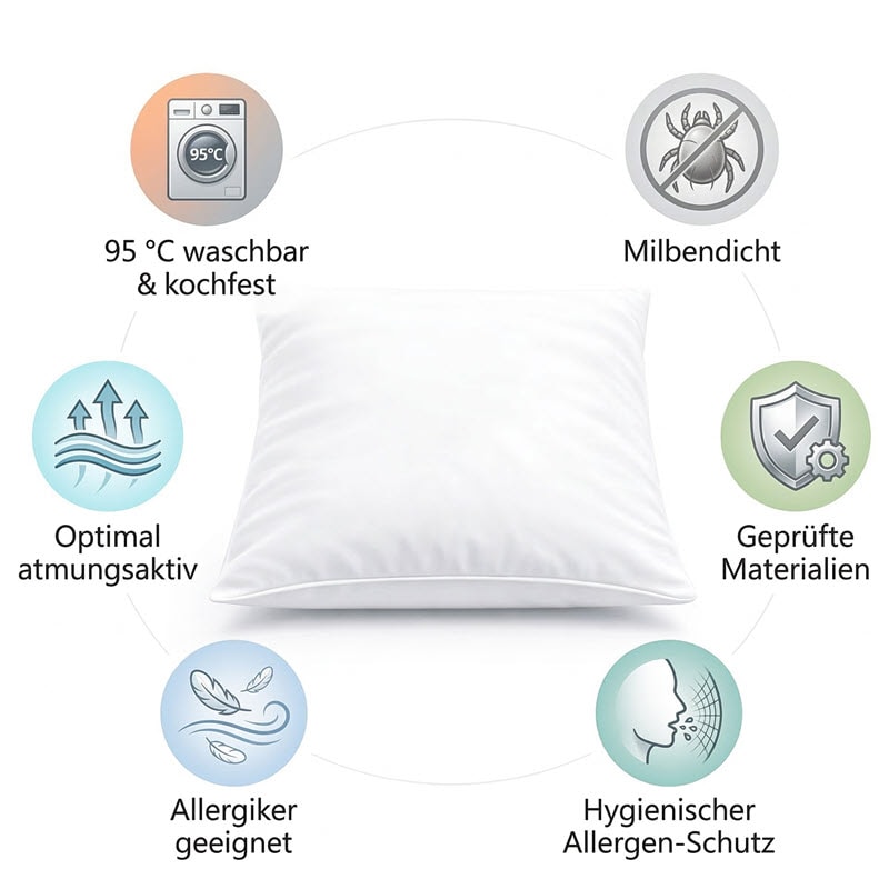 - Dichte Barriere: Allergene und Milbenrückstände bleiben im Inneren des Kissens eingeschlossen.