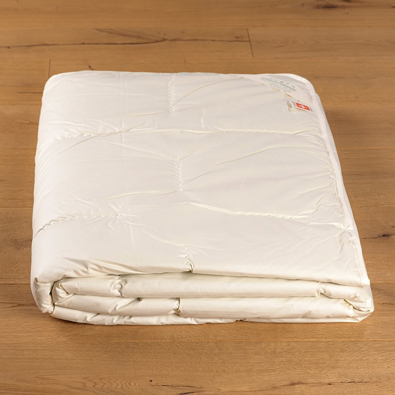 Unsere Ganzjahresdecke mit 70 % Lyocell und 30 % Kapok wird in der Schweiz hergestellt und bietet das ganze Jahr hindurch ein ausgeglichenes Schlafklima – ideal für alle, die eine atmungsaktive und waschbare Ganzjahresdecke suchen.
